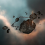 Massive construction girders stretch between the crumbled asteroids, giving a solid ground for a station or outpost.