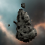 Fragments from an asteroid collision or a supernova, this rock formation decorates the starscape as a planetary mountain range.