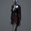 Dress like a goddess in the 'Sanctity' dress, a tight fit that accentuates your divine features. A sharp V-neck cut is framed in a detailed silvery tattoo, providing a delicate tone to your appearance, while a solid black upper front on a blood-red background is extended to metallic lines over the shoulder, waist and trim, giving the impression that the wearer is armored with righteousness, beauty, and power.