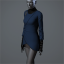 With its curved, sinuous lines and high black collar, the 'Rocket' dress is equally reminiscent of a rocket breaking through the atmosphere and a dagger piercing through skin. A single join snakes through a front the color of an early night sky, overlaid with a fine shoulder brooch, and terminating in a short V-shaped edge, while the hands are covered in silver clasps overlaying a fine pair of black gloves.