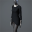 With its curved, sinuous lines and high white collar, the 'Rocket' dress is equally reminiscent of a rocket breaking through the atmosphere and a dagger piercing through skin. A single join snakes through the dark grey front, overlaid with a fine shoulder brooch, and terminating in a short V-shaped edge, while the hands are covered in golden clasps overlaying a fine pair of white gloves.