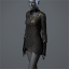With its curved, sinuous lines and high black collar, the 'Rocket' dress is equally reminiscent of a rocket breaking through the atmosphere and a dagger piercing through skin. A single join snakes through a front that resembles a cracked desert floor under the light of a dead moon, overlaid with a fine shoulder brooch, and terminating in a short V-shaped edge, while the hands are covered in silver clasps overlaying a fine pair of dark gloves.