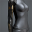 For instance, there are no unwieldy mechanical joints visible anywhere on the device. The shoulder is instead covered with a number of tiny clamps whose design conveys the sinuous curved lines of capsuleer beauty while simultaneously ensuring the shoulder has more than its full range of mobility. The elbow, likewise, appears more human than machine, thanks in good part to the superstrong stretchable material that covers it entirely in colors of deepest night. Moreover, some of the traditionally larger muscles have replaced by socketed metal pumps that are nested inside one another in concentric fashion, giving a slim and tight, yet powerful impression.