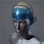 This translucent blue decoration was created for lightweight comfort. As part of its design it covers only part of the head, all the better to indicate a debonair look for the most fashionable (and, truth be told, richest and most powerful) individuals in the cluster. It is the kind of headgear that might be taken into sports, into high-speed traffic, or simply into a meeting of high-powered executives, where its casual style makes it very apparent who's boss.