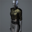 Modeled after the Class B military blouses found in several modern navies, the breathtaking green satin "Sterling" dress blouse is designed to cope with the realities of daily service while maintaining the image of an orderly fighting force. Our dark wool blends are specially treated to resist staining, even tough grease and oil stains common on modern starships. To contrast with its rippling, silken flow, the blouse is anchored with traditional epaulets and a classic waist cincher.