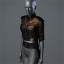 Modeled after the Class B military blouses found in several modern navies, the stunning orange satin "Sterling" dress blouse is designed to cope with the realities of daily service while maintaining the image of an orderly fighting force. Our dark wool blends are specially treated to resist staining, even tough grease and oil stains common on modern starships. To contrast with its rippling, silken flow, the blouse is anchored with traditional epaulets and a classic waist cincher.